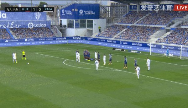 48'韦斯卡右路发起快攻,冈崎慎司横传到远端,哈维·加兰左脚爆射破门,韦斯卡1-0主场领先皇马!